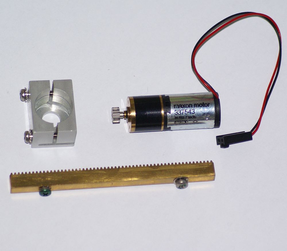 Inclusief houder blokje en tandwiel rail (9cm) (kan op 24V ongeveer 2 Kg trekken)